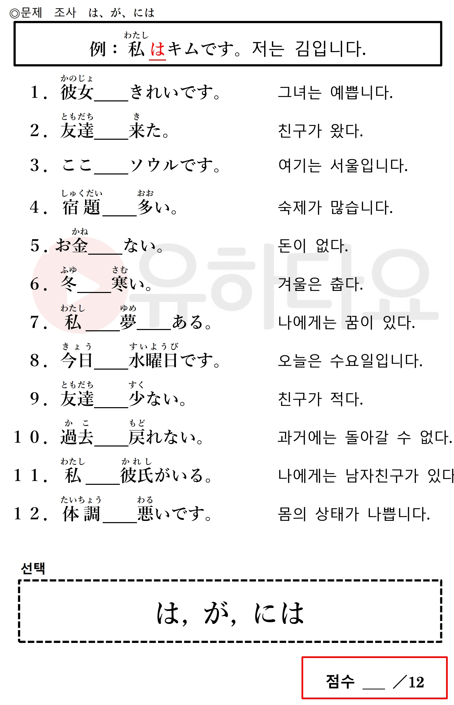 1.(に)は12.が