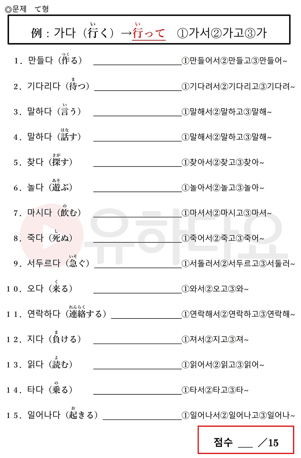 1.つくって2.まって3.いって4.はなして5.さがして6.あそんで7.のんで
