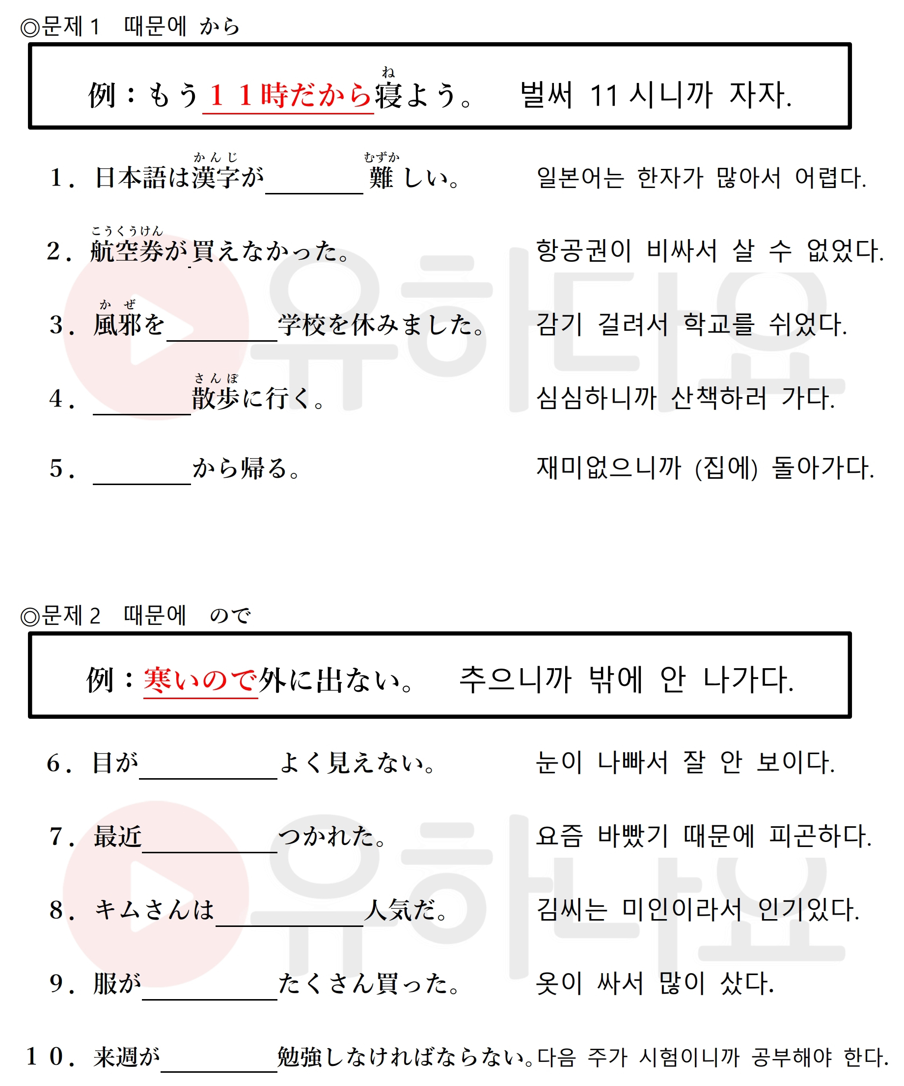 50강 이유를 말할 땐 から