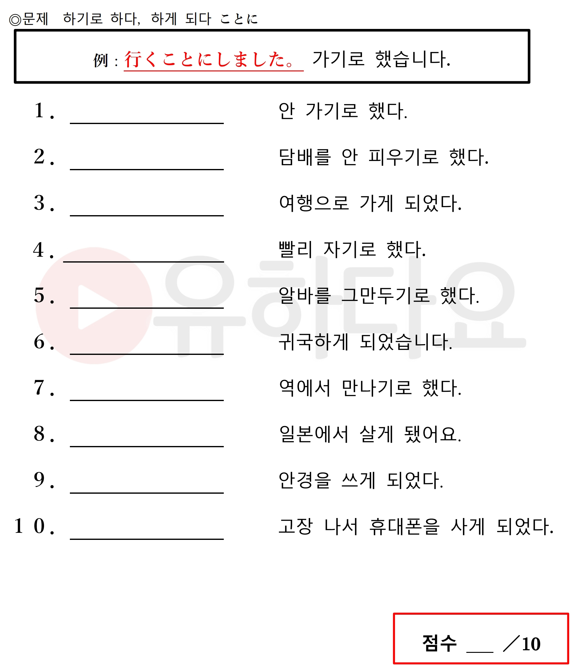 ことになりました。7.えきであうことにした。8.にほんにすむことになった。9.
