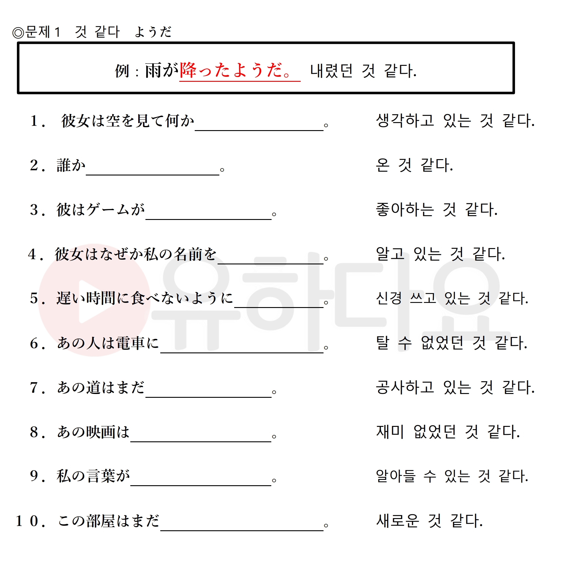1.かんがえているようだ2.きたようだ3.すきなようだ4.しっているようだ5.