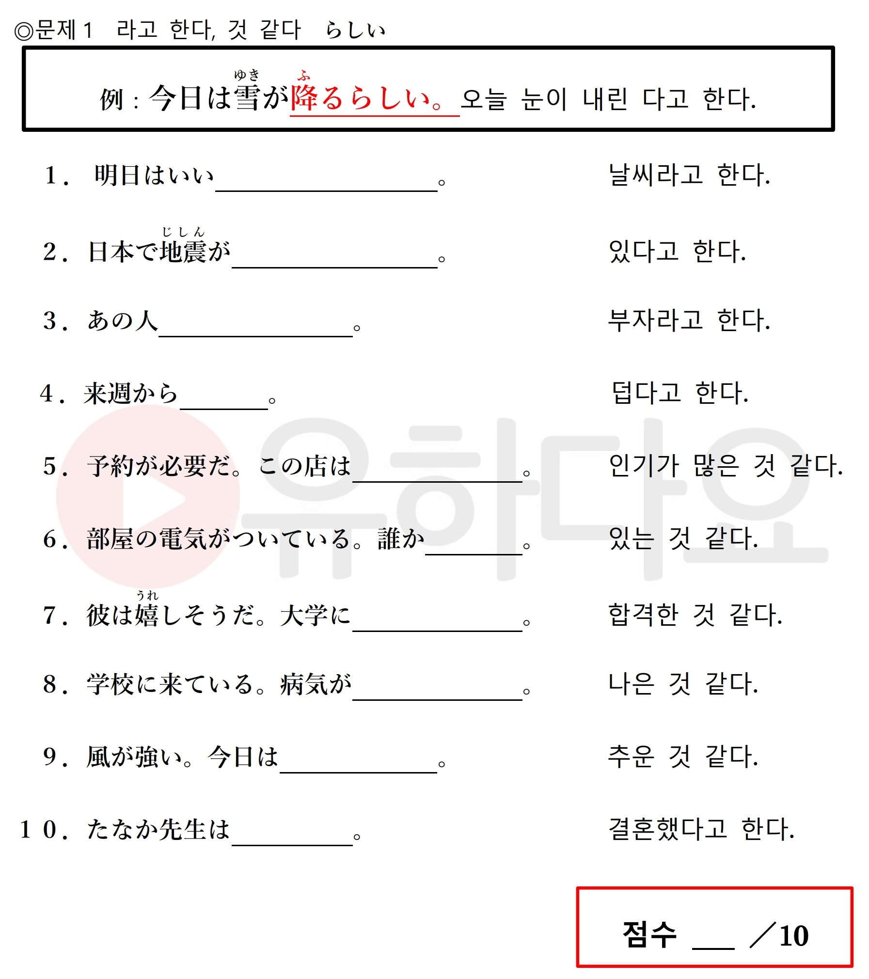 1.てんきらしい2.あったらしい3.おかねもちらしい4.あついらしい5.にんき