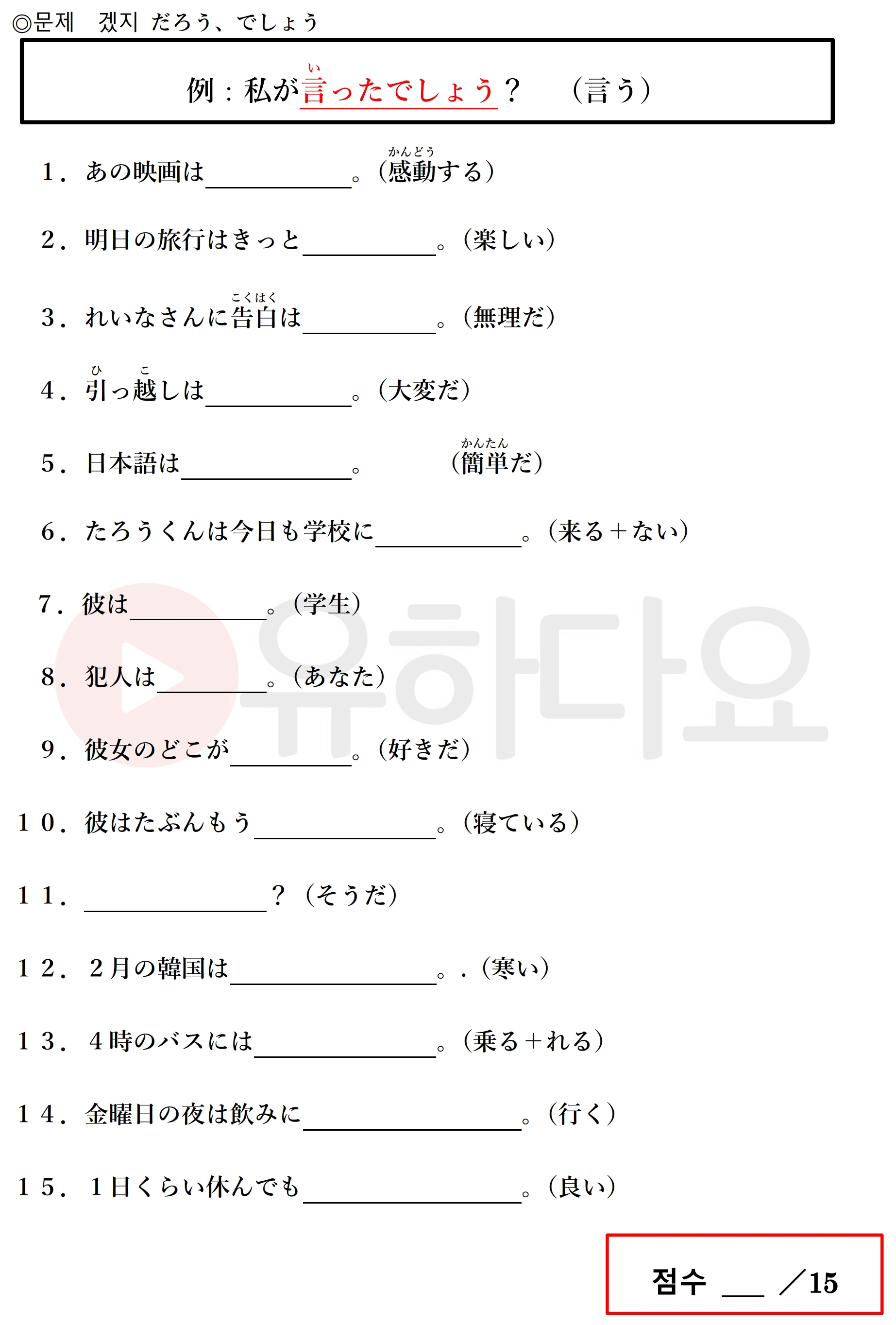 14.いくだろう(いくでしょう)15.いいだろう(いいでしょう)