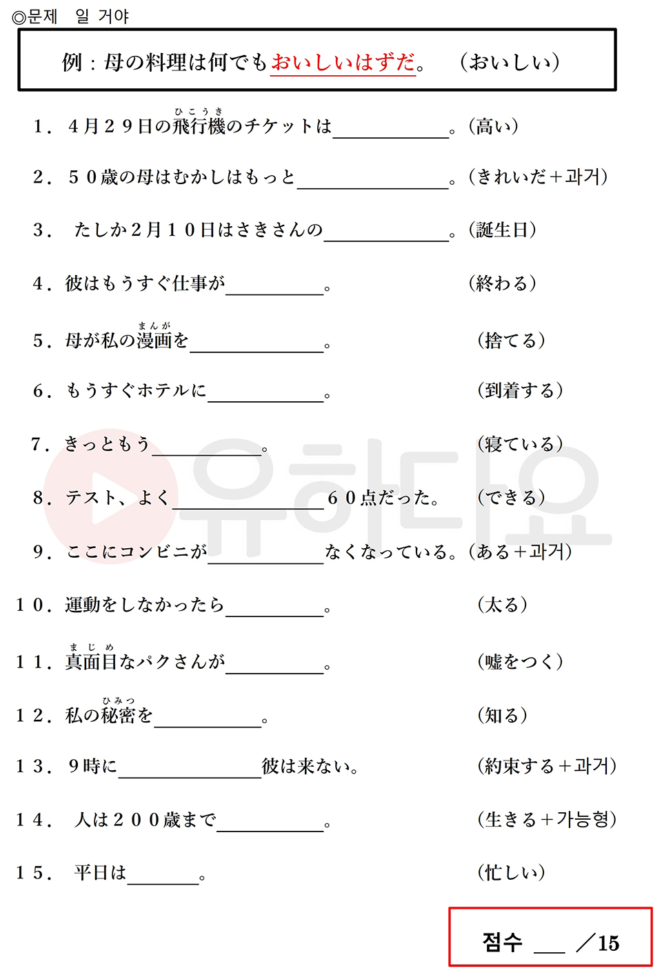 1.たかいはずだ2.きれいだったはずだ3.たんじょうびのはずだ4.おわるはずだ