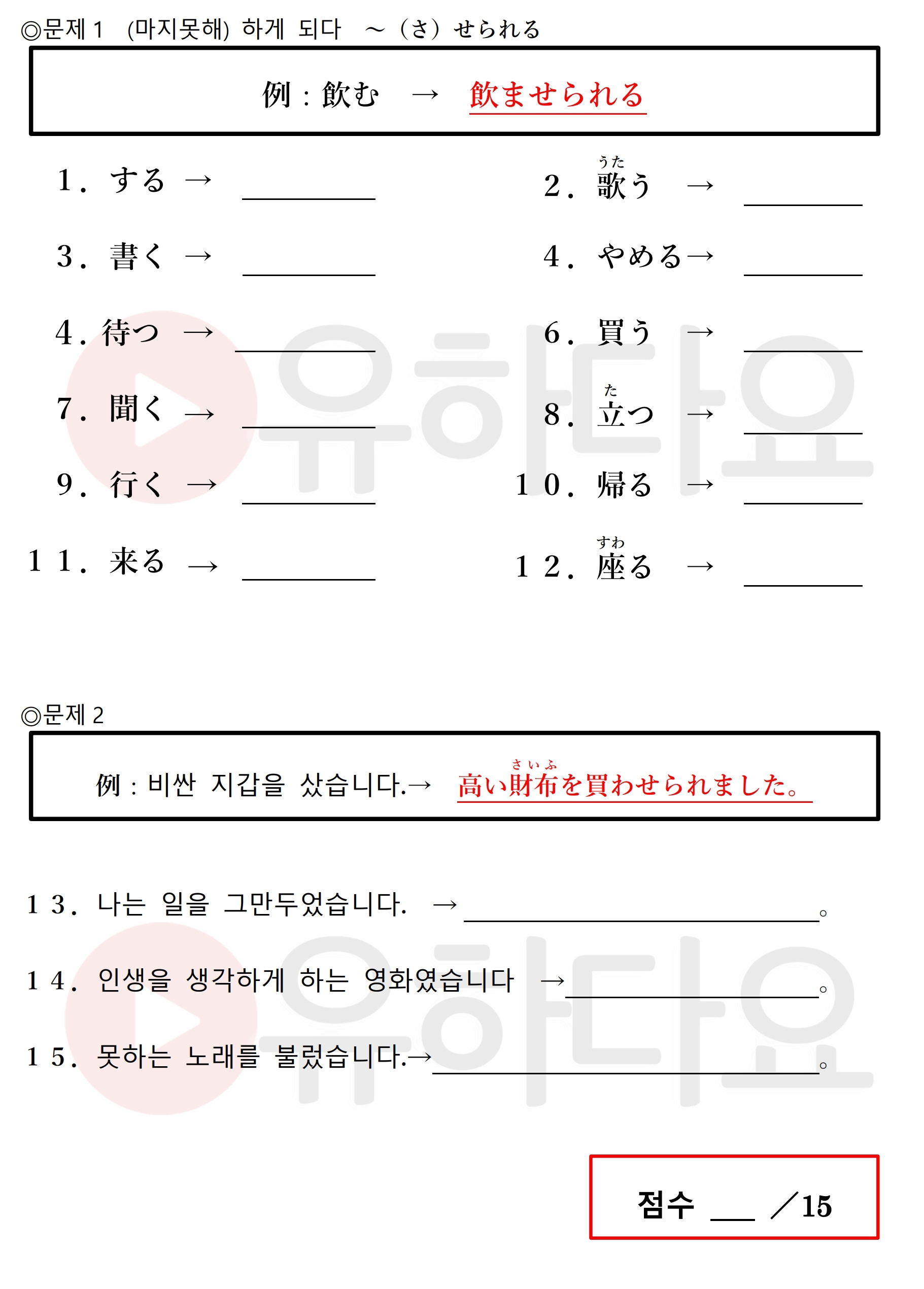 こさせられる (할 수 없이) 하다 -> こさせられる(할 수 없이) 오다